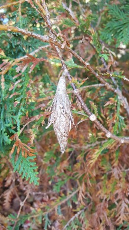 Bagworm is another insect that has become much more common in recent years. These caterpillars use parts of the plants they are feeding on to build a bag around themselves, acting as protection and camouflage. Arborvitae, juniper, and cedar are among the most common plants typically fed on, but wide varieties of plants, including deciduous plants, could be hosts. A few of these caterpillars can be easily overlooked, but as the population increases, they can easily defoliate trees and permanently damage evergreens, creating large dead areas or killing the plant.